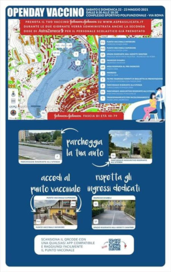 Nel condividere l’indicazione della Regione Basilicata e dell’Amministrazione Comunale della Città di Potenza, l’Asp Basilicata, con il supporto della Protezione Civile e del “Terzo Settore”, ripropone il week-end vaccinale “Johnson & Johnson”.