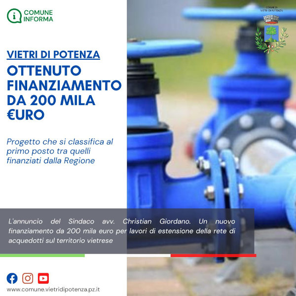 Nuovo e importante finanziamento ottenuto dal Comune di Vietri di Potenza.