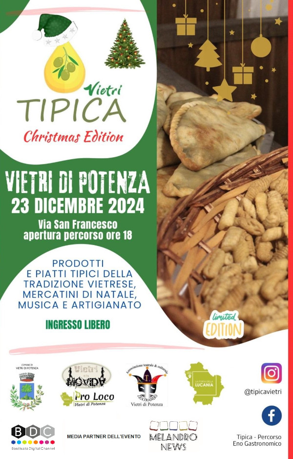 È tutto pronto a Vietri di Potenza per la seconda edizione di Tipica Christmas Edition, l’edizione natalizia di uno dei percorsi gastronomici più partecipati e apprezzati dell’estate lucana.