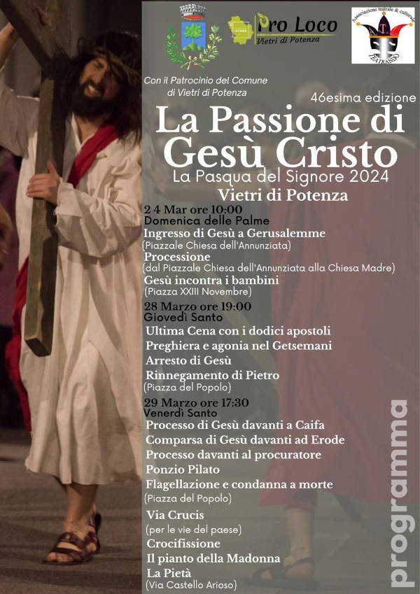 Al via domenica 24 marzo le rappresentazioni per la 46^ edizione del “La Pasqua del Signore” a Vietri di Potenza.