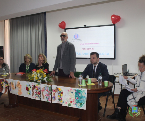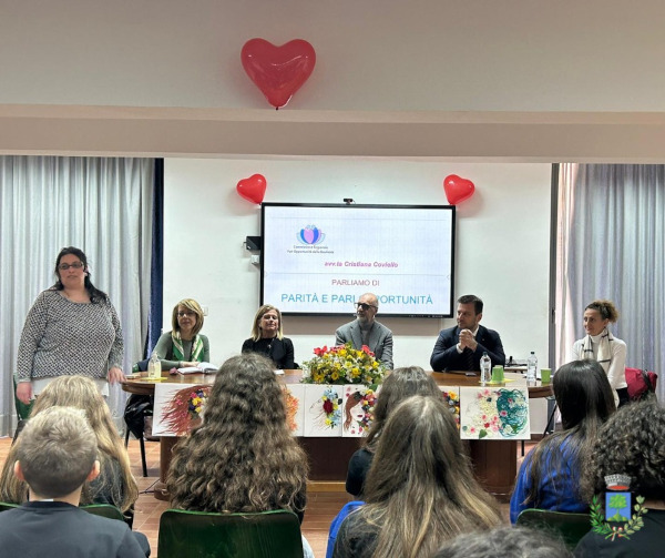 Il sindaco, insieme alla consigliera comunale Antonietta Montesano, ha incontrato gli studenti, insieme a Margherita Perretti (presidente della Commissione Regionale Pari Opportunità) e a Cristiana Coviello (componente CRPO), alla presenza del dirigente scolastico Vincenzo Vasti, dei docenti e dei genitori.