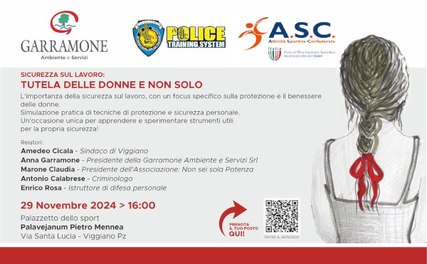 Il Palazzetto dello Sport, Palavejanum Pietro Mennea di Viggiano, ospiterà domani 29 Novembre alle ore 16:oo, la conferenza “Sicurezza sul Lavoro: Tutela delle Donne e non Solo“, organizzata da Garramone Ambiente e Servizi.