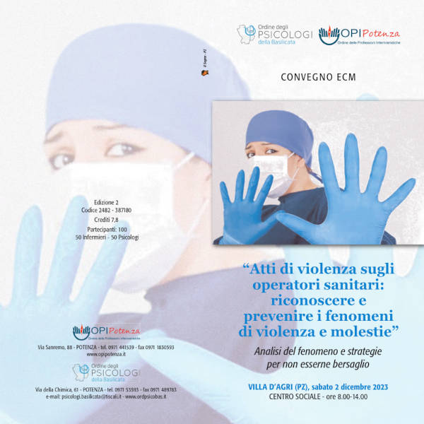 “Atti di violenza sugli operatori sanitari: riconoscere e prevenire i fenomeni di violenza e molestie. Analisi del fenomeno e strategie per non esserne bersaglio” è il titolo del convegno Ecm (Educazione Continua in Medicina) in programma il prossimo 2 dicembre nel Centro Sociale di Villa D’Agri (Pz), dalle 8 alle 14.