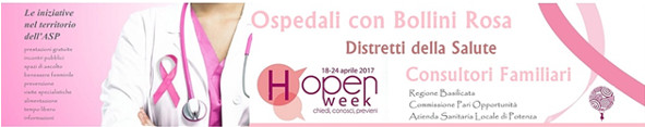 - 26 Aprile, Consultorio Familiare di Potenza (via della Fisica 18), dalle ore 8:30 alle ore 13:00. Consulenze Ginecologiche (prenotazioni: 0971/425250 – 251);