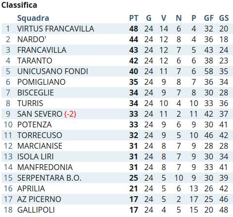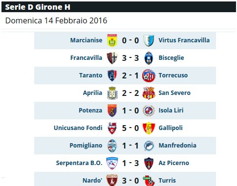 Ecco di seguito tutti i risultati della 24esima giornata della serie D girone H e la classifica aggiornata.