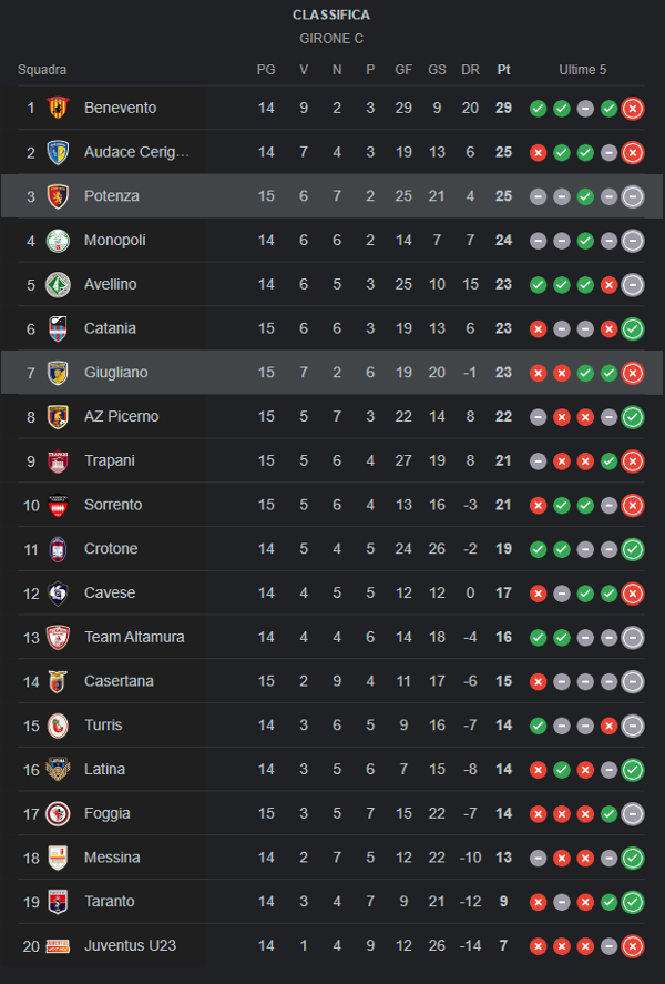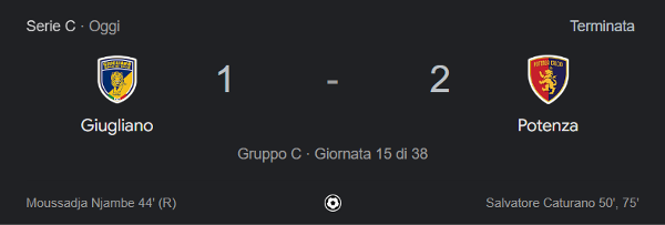 Si è chiusa poco fa la partita tra Giugliano e Potenza Calcio.