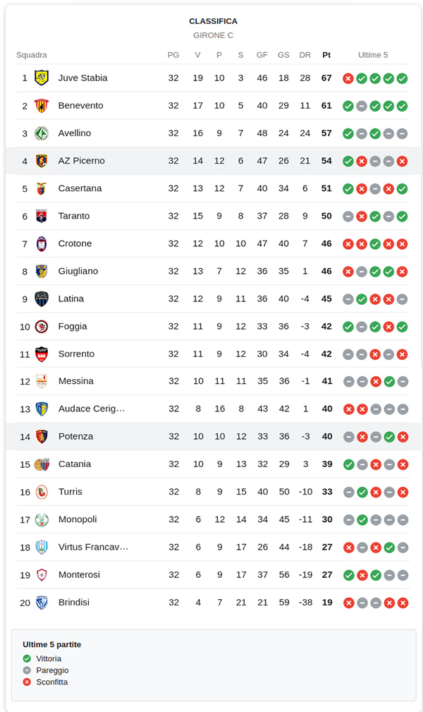 Si è chiusa poco fa la partita tra Potenza e Picerno.