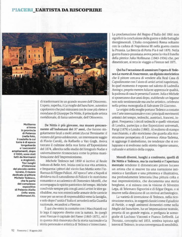 Vittorio Sgarbi scrive di Moliterno e di Michele Tedesco su Panorama.
